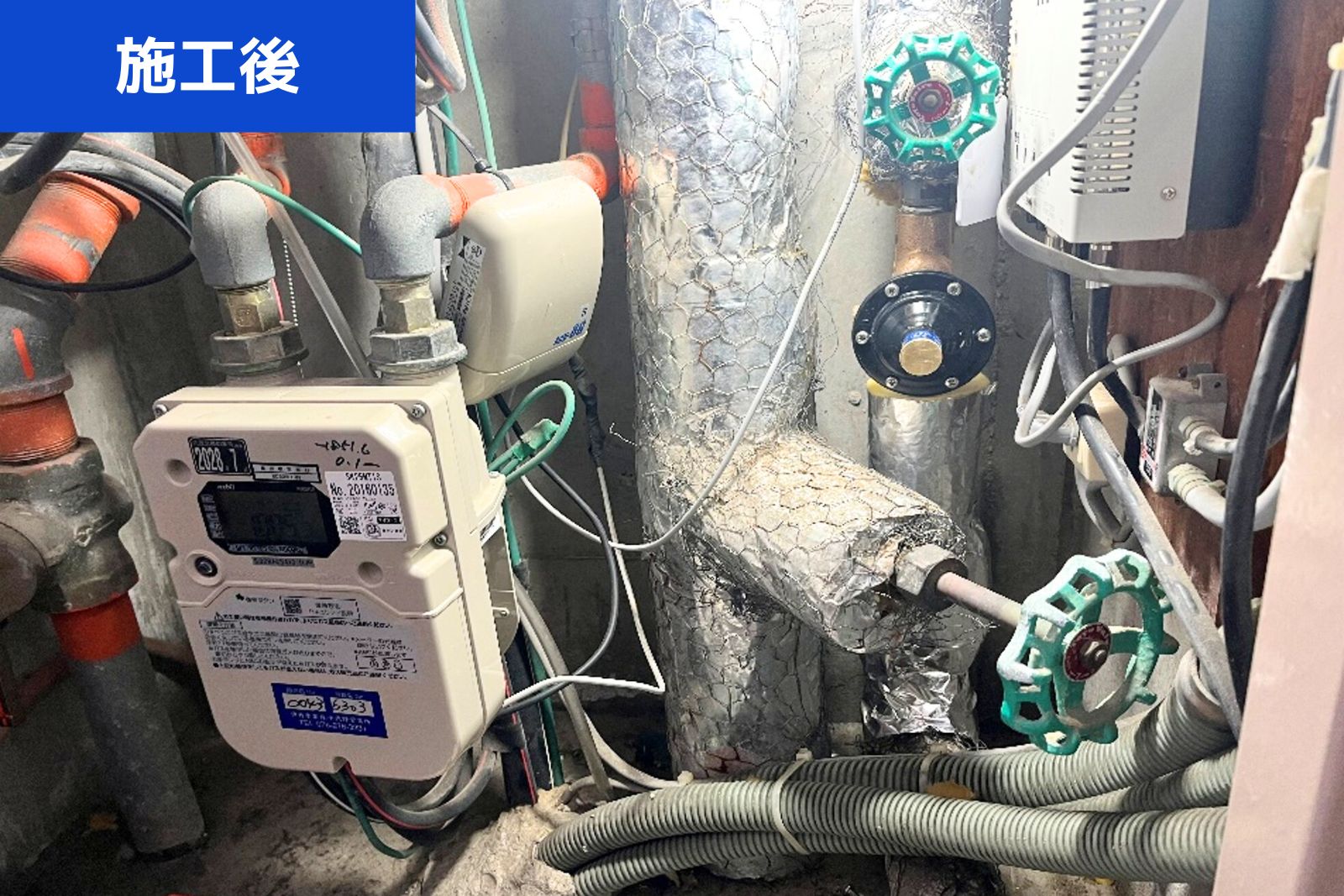減圧弁下部はハイパージョイントで固定しました。目に見えない部分ですが、日々の生活で水を安全に使うための重要な工程です♪