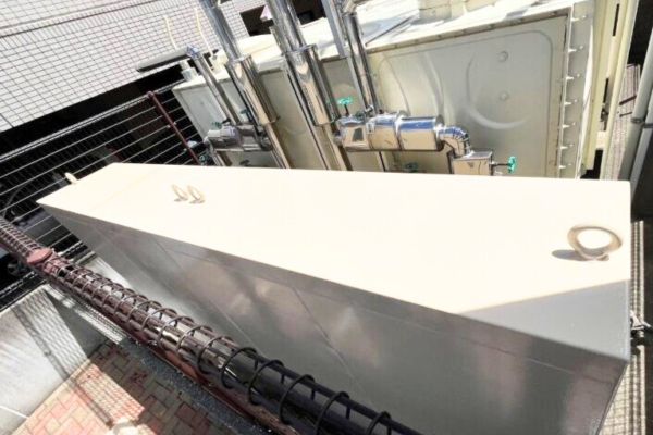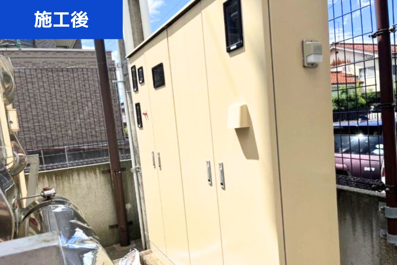 経年劣化で色あせた分電盤キュービクルを塗装し、見た目と防錆性を回復させました。