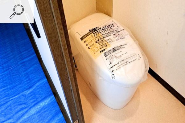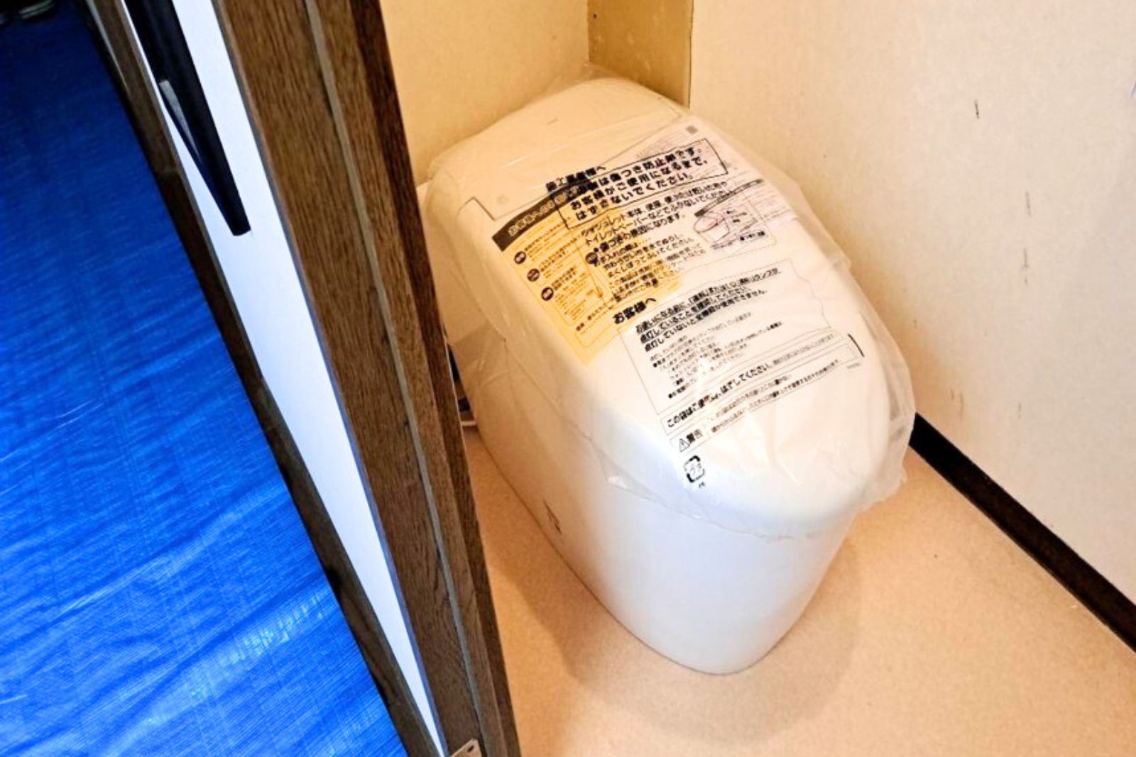 トイレ交換後、トイレ室内壁の下地処理をし、クロスを貼りをしていきます。
