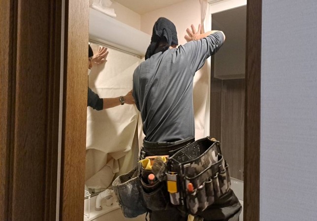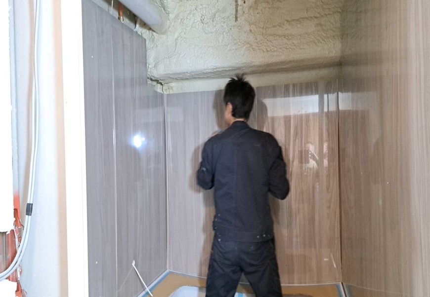 ユニットバスの解体・組立、ユニットバス入口四方枠の取り付け、壁ボードの補修をしていきます。