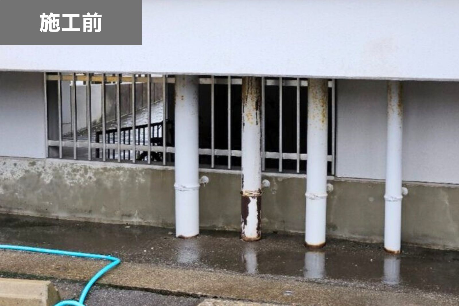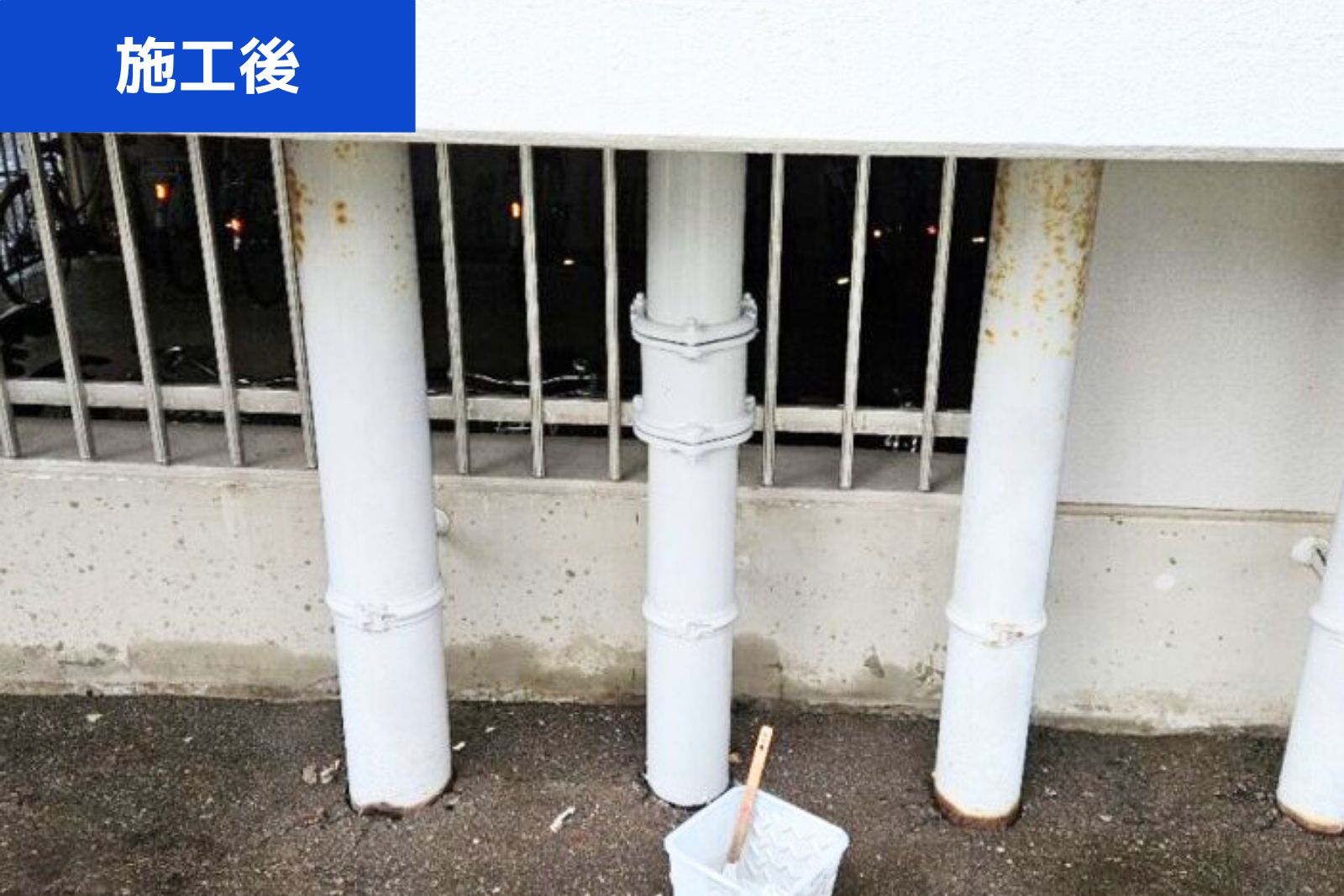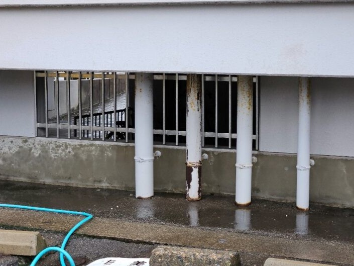 排水管の漏水を修繕し、防水性と見た目を回復。塗装で仕上げることで耐久性もアップしました。