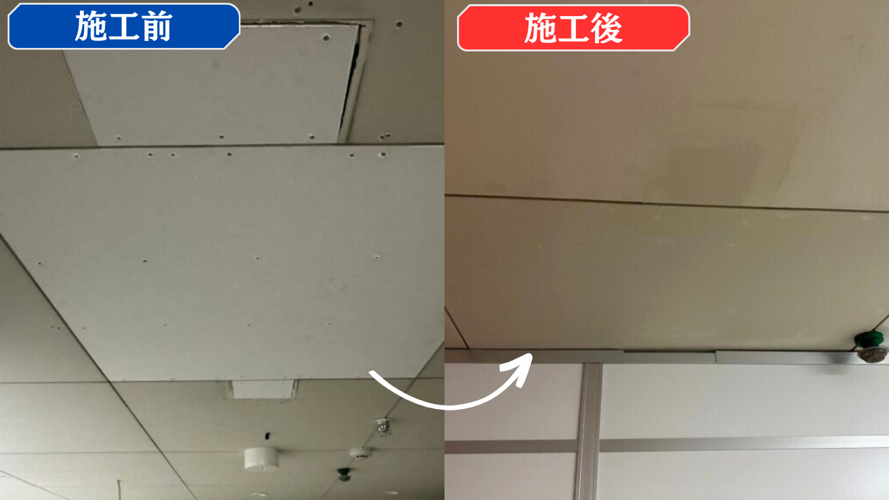 天井の下地を整えるためにパテ処理を行い、仕上げ塗装を行いました。