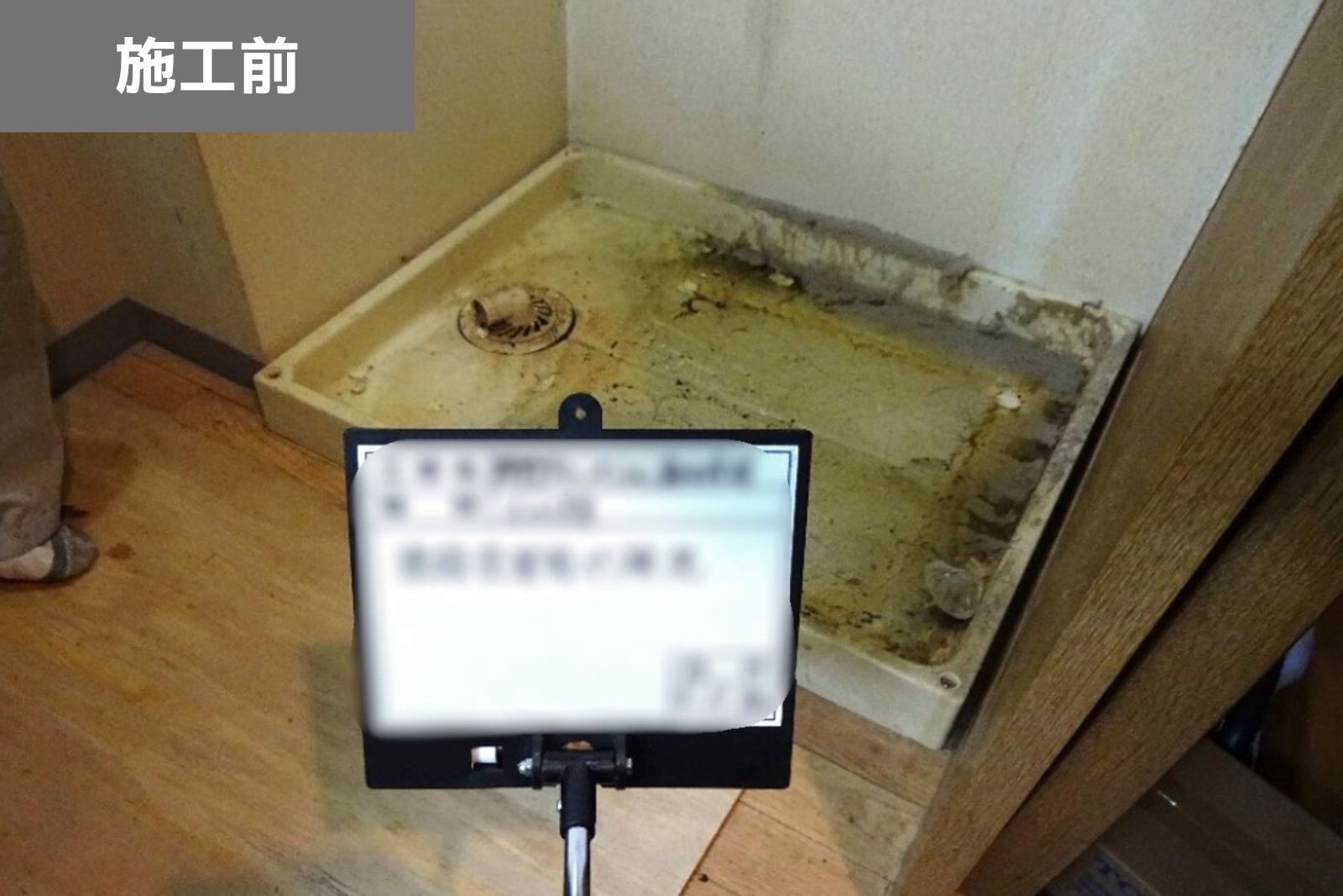 洗濯機の下の受け皿(洗濯機パン)が古くなり割れがあり、劣化が進んでいる状態でした。