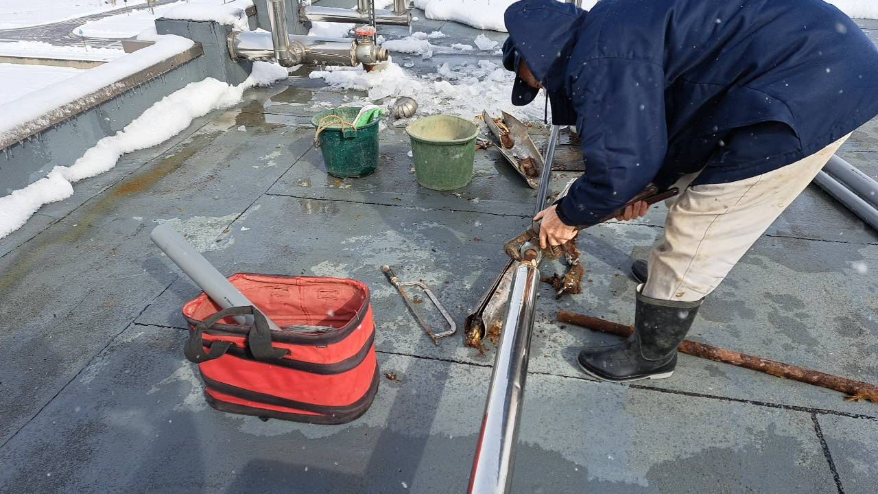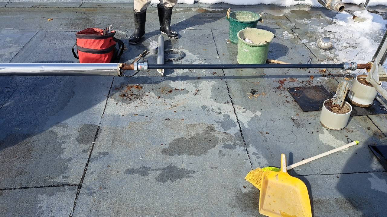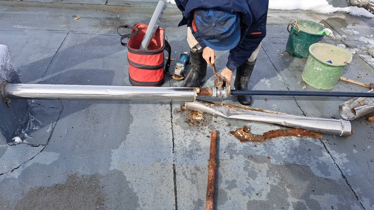 古くなった鉄管を切断し、ジョイント部分にハイパーソケットを取り付けました。