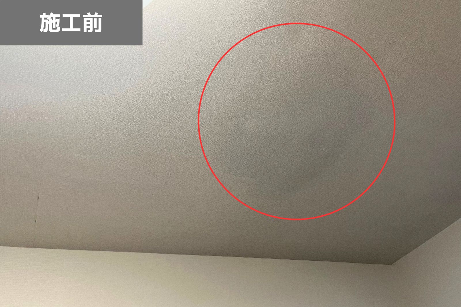 天井クロスに漏水被害があり、クロスに黒いシミが発生してしまいました。
