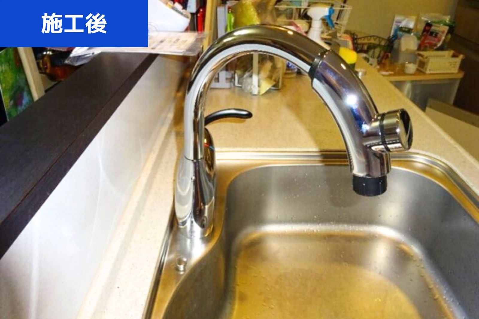 古くなった水栓を新しいものに交換し、水漏れや使い勝手の不便さを解消しました。