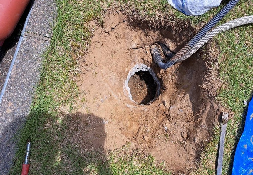 工事個所の基礎斫り~ウレタン塗装2回塗りの様子です。