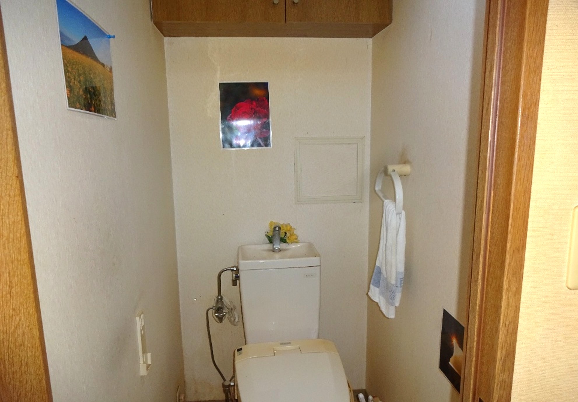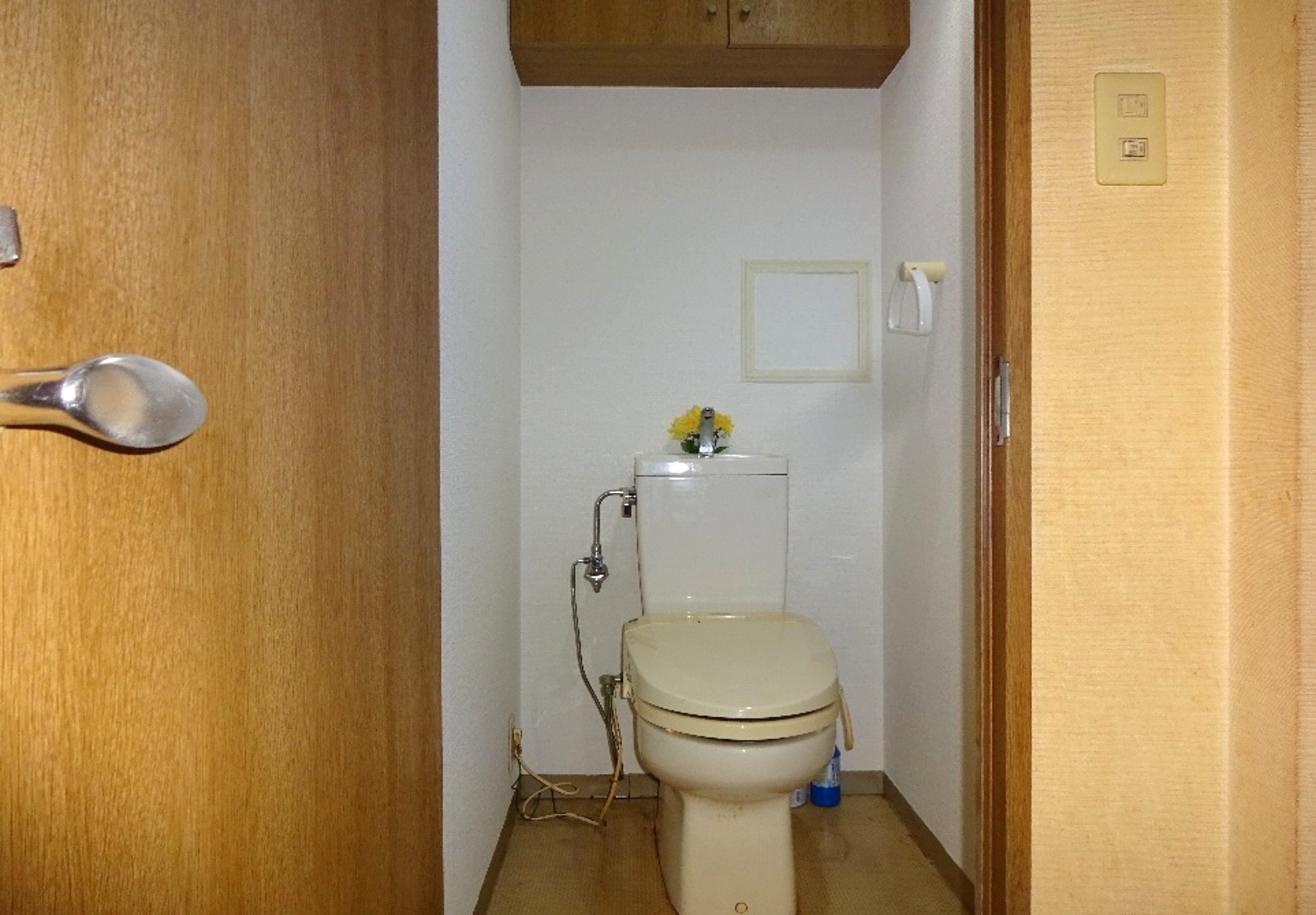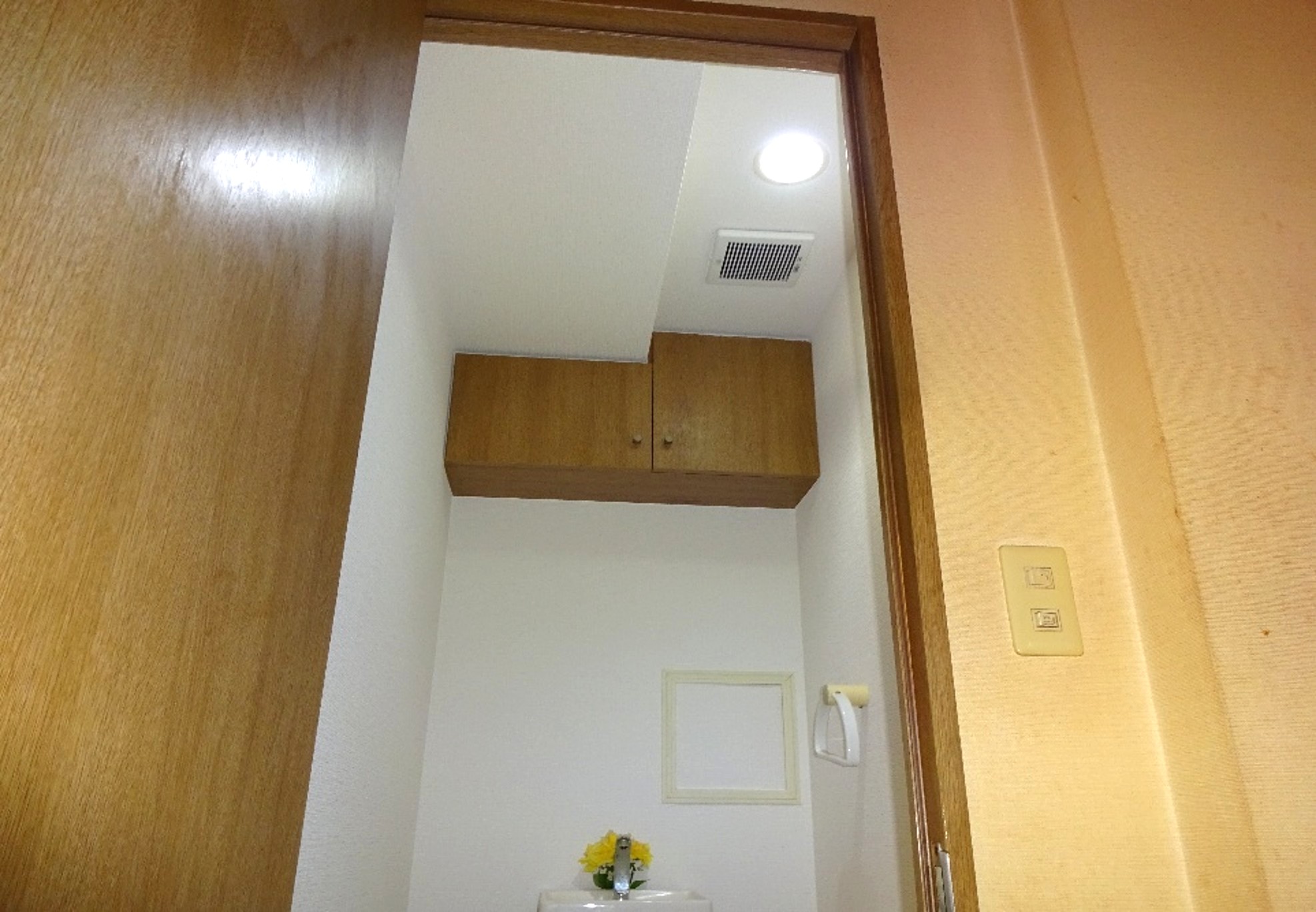 トイレ天井・壁のクロス貼り替えです。クロス貼り替え後、トイレの除菌を行い、完了です。