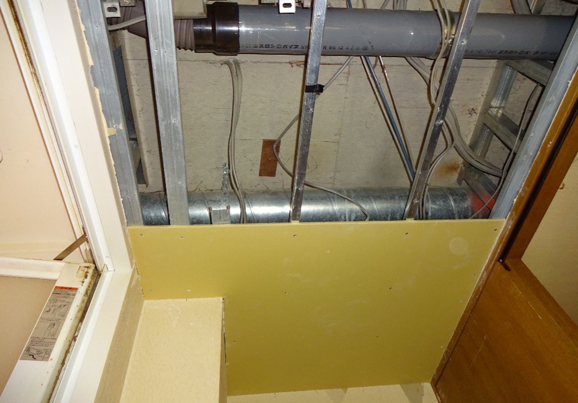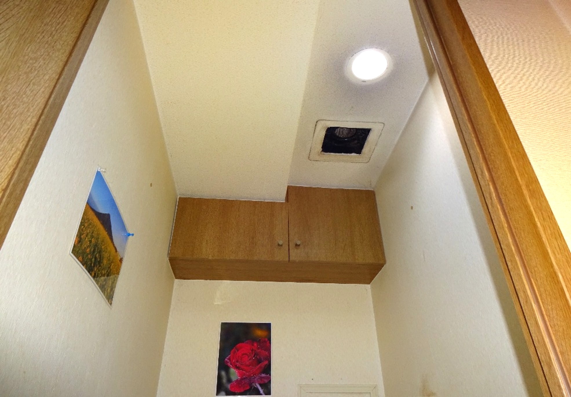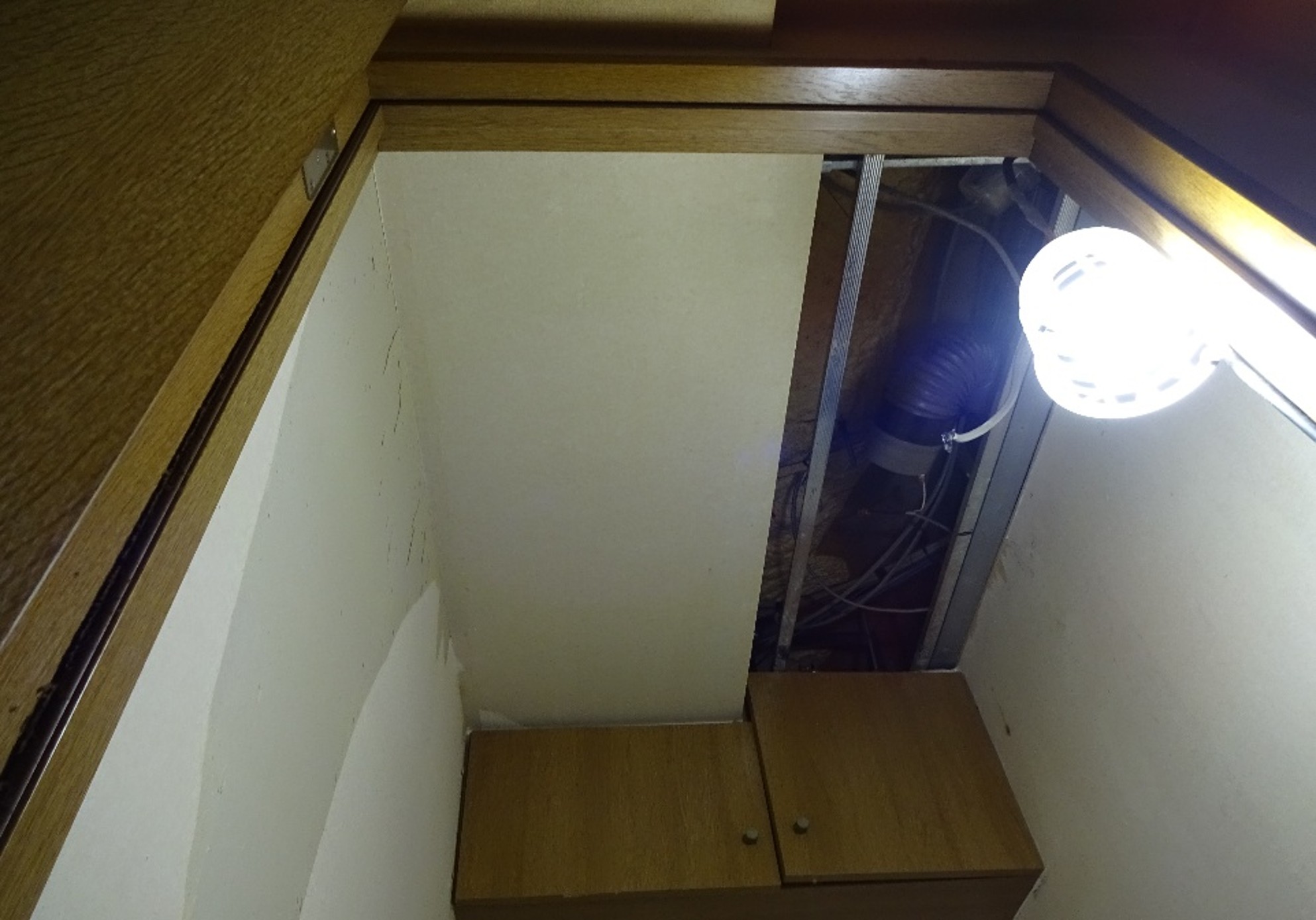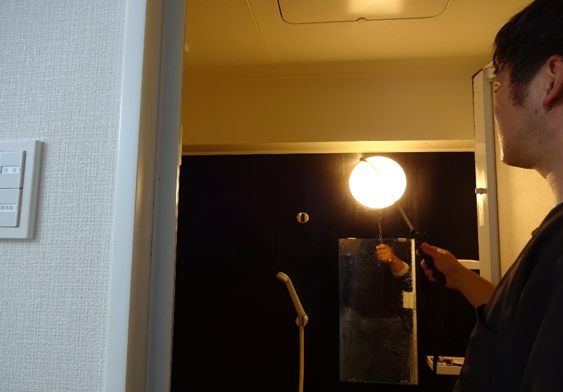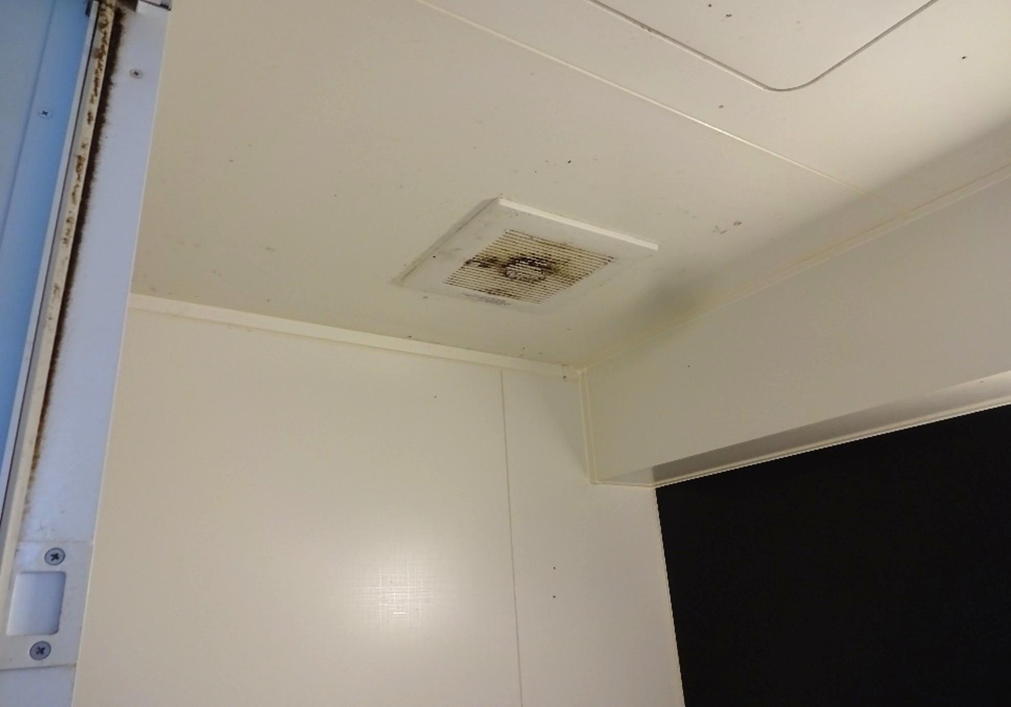 ・ユニットバスの天井点検口からも漏水があり、換気扇には異音が出ている状態でした。