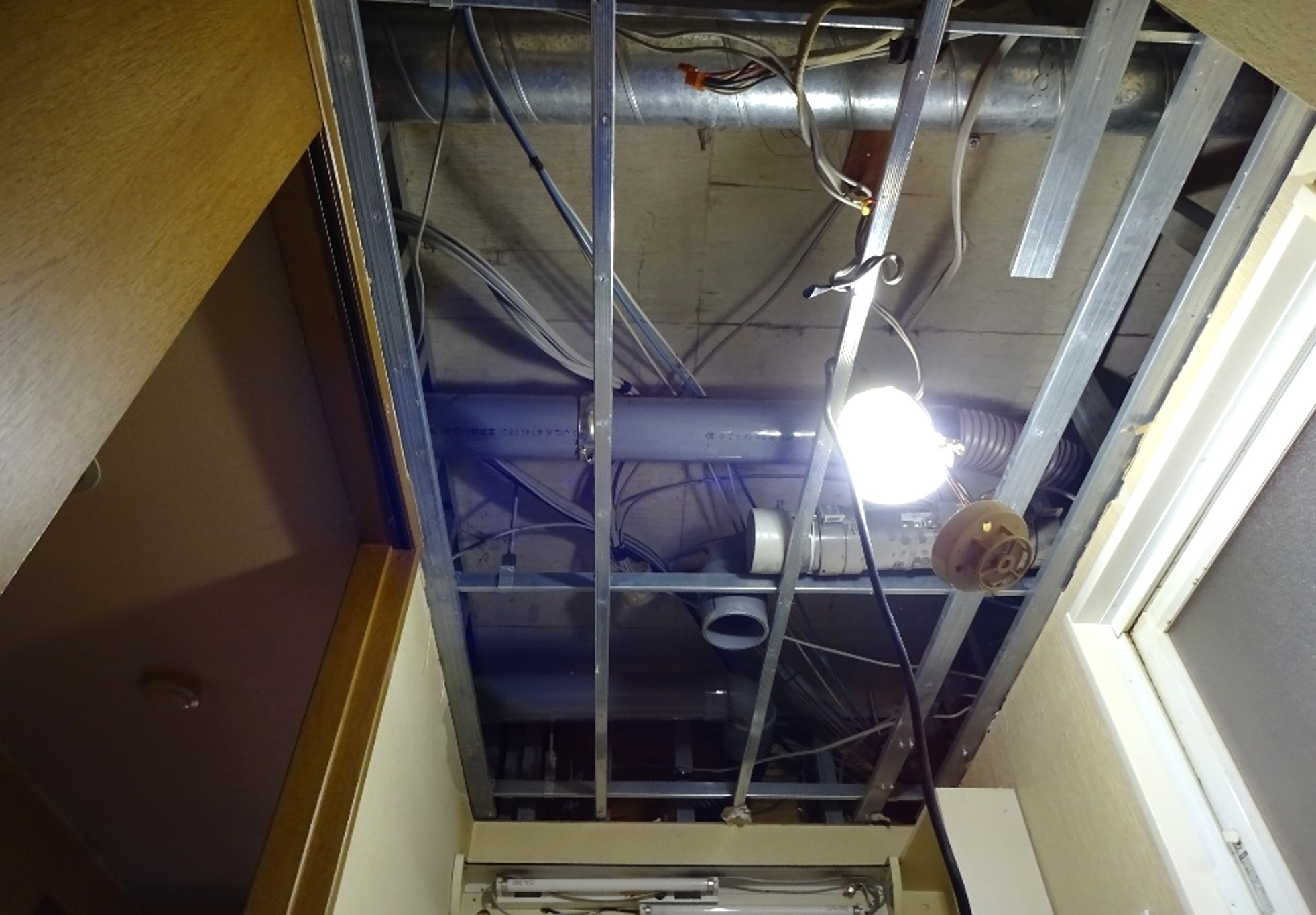 ・洗面脱衣室の天井からも水漏れが見られ、生活に支障が出ていました。