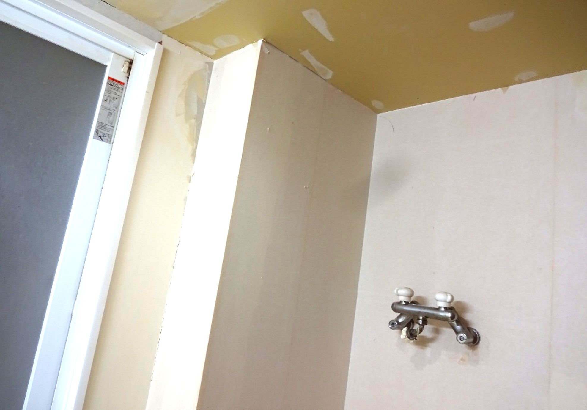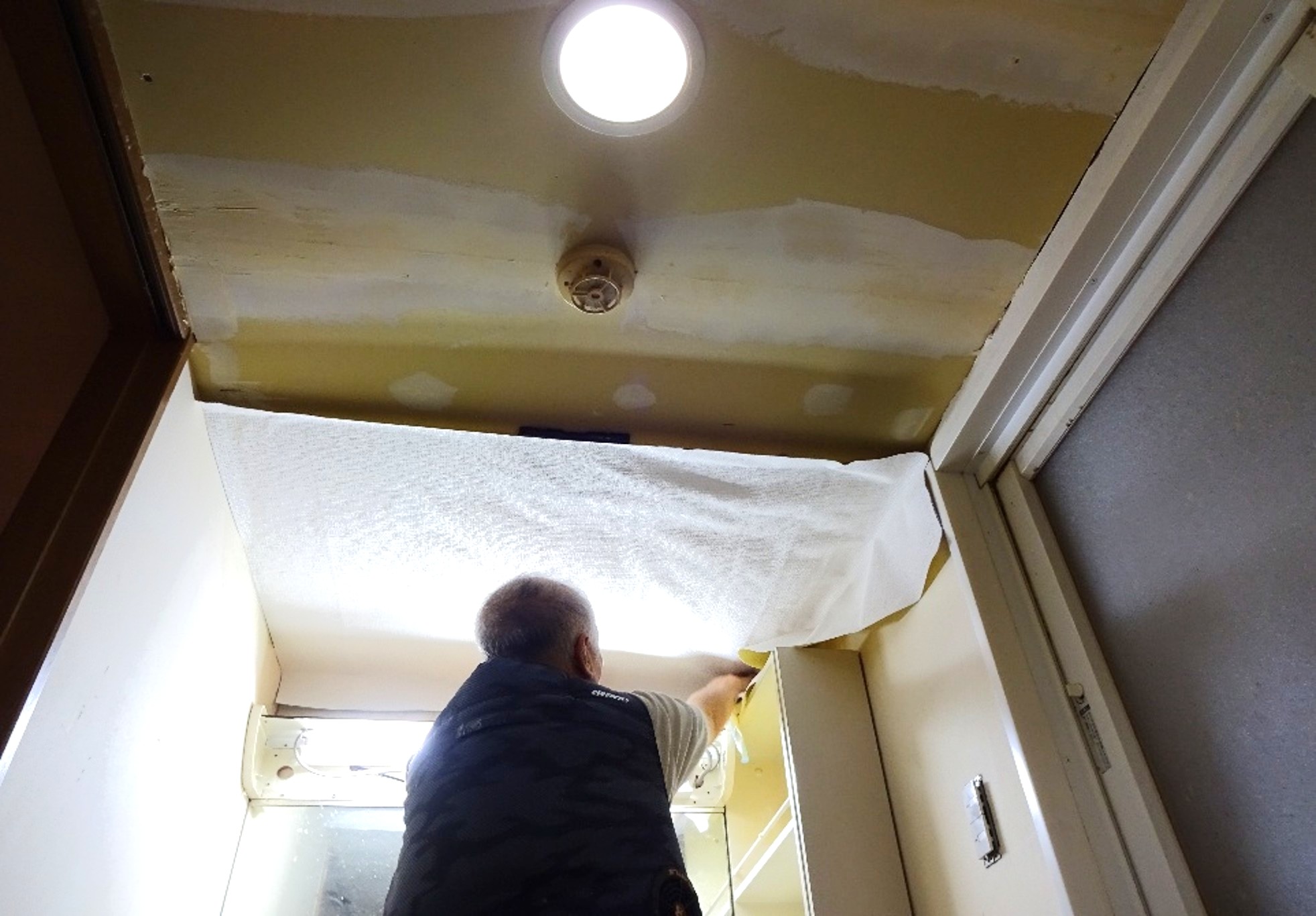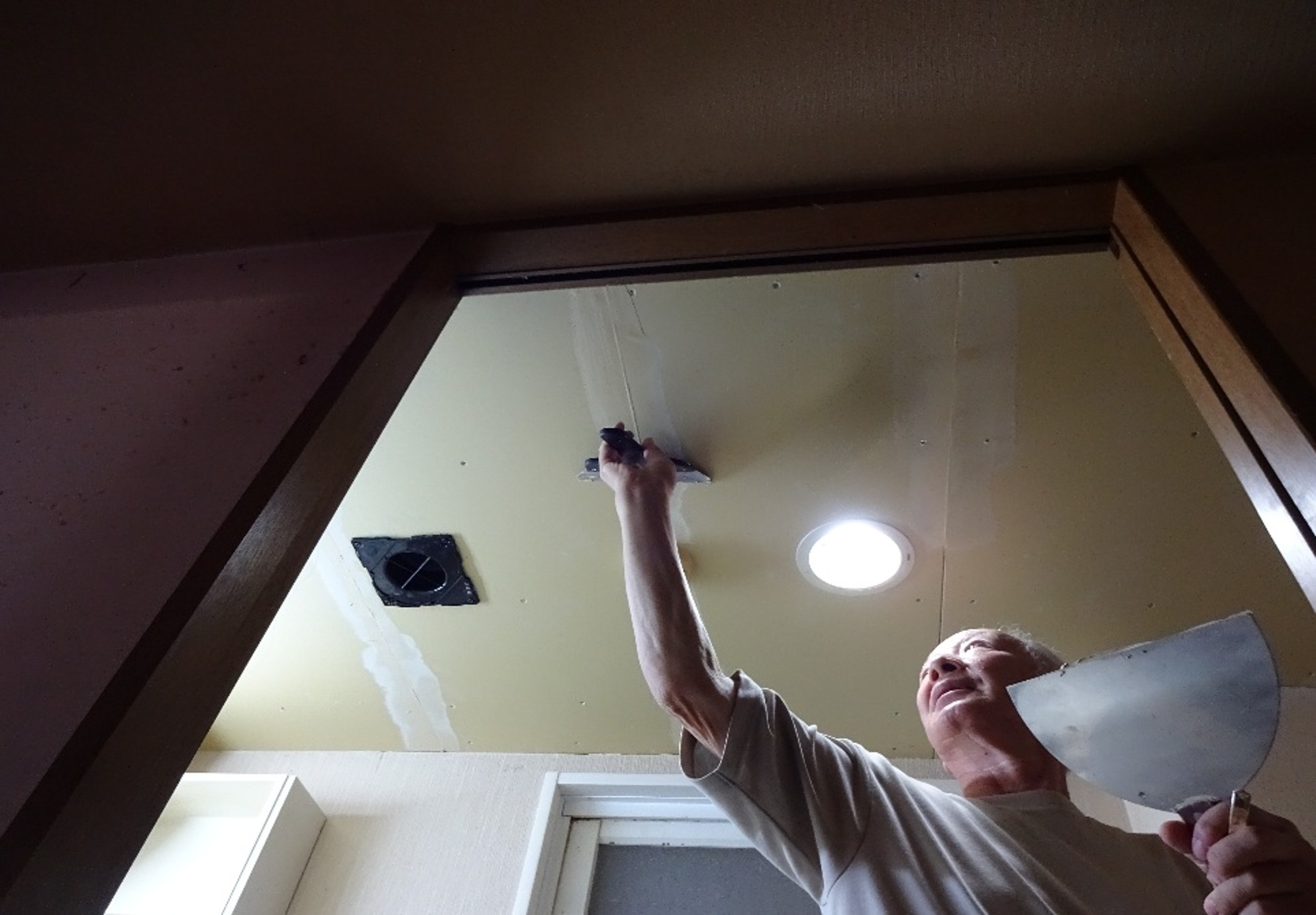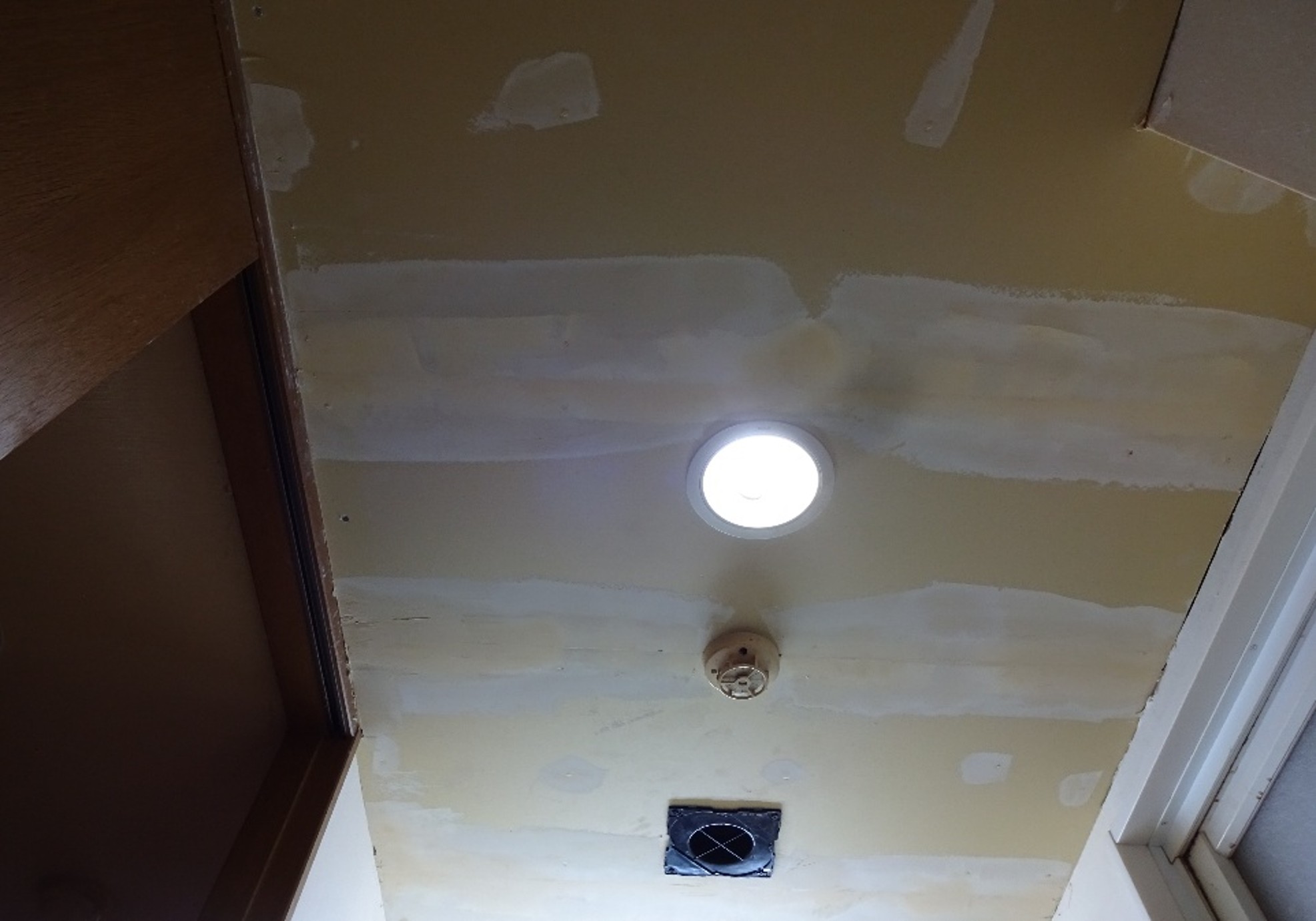 次の工程で、天井・壁のクロスを貼り替えるのでその前に、パテ処理をします。