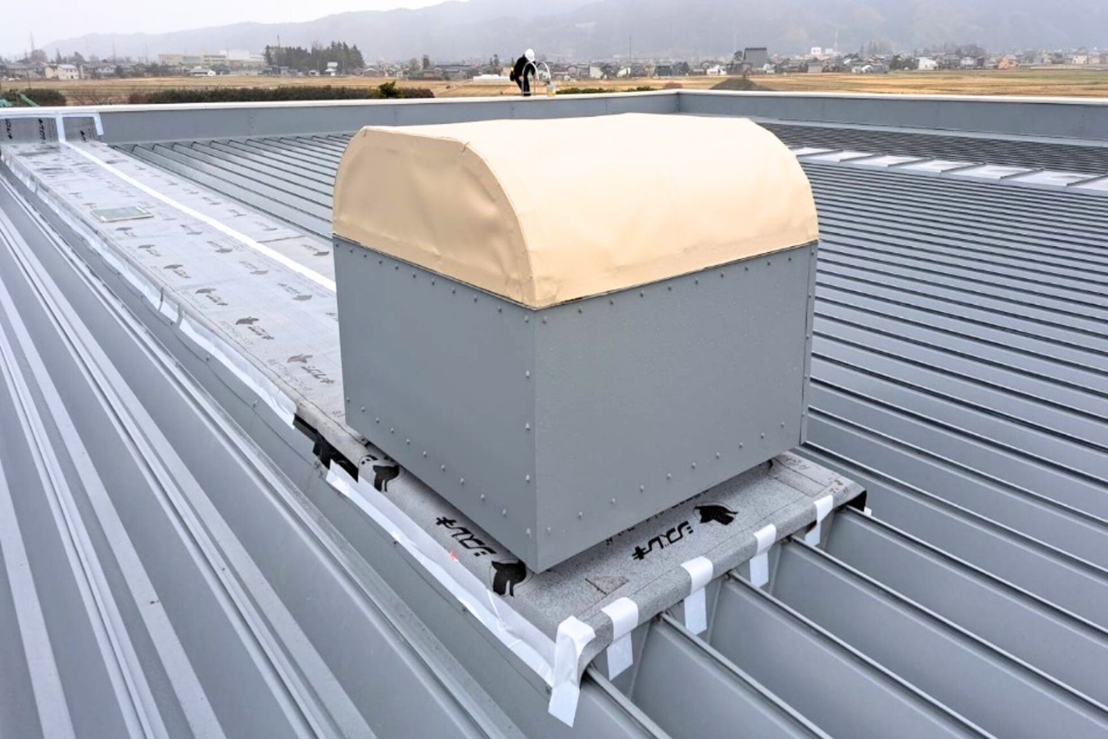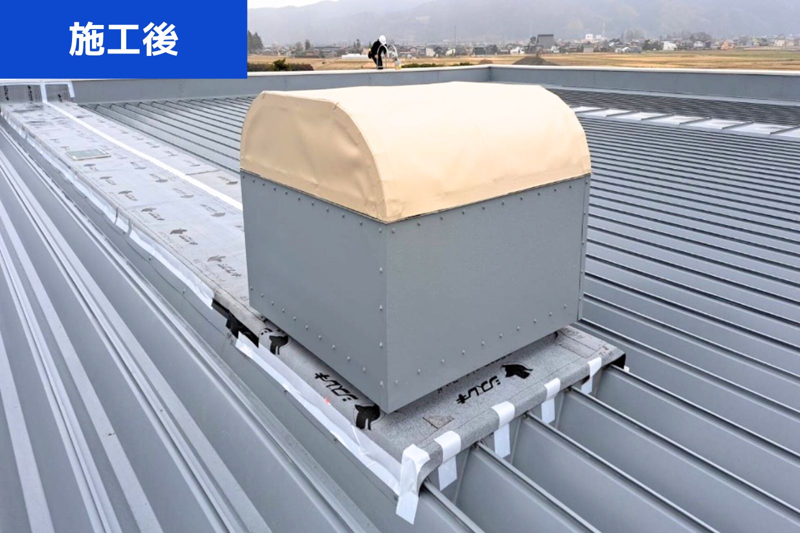 白山市 物流センター 屋上換気扇 架台天端シート防水