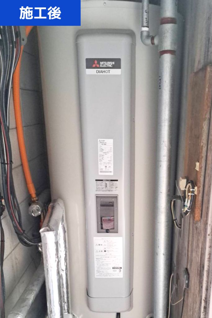 古くなっていた電気温水器を新しいものへ交換し、動作確認もバッチリです!
