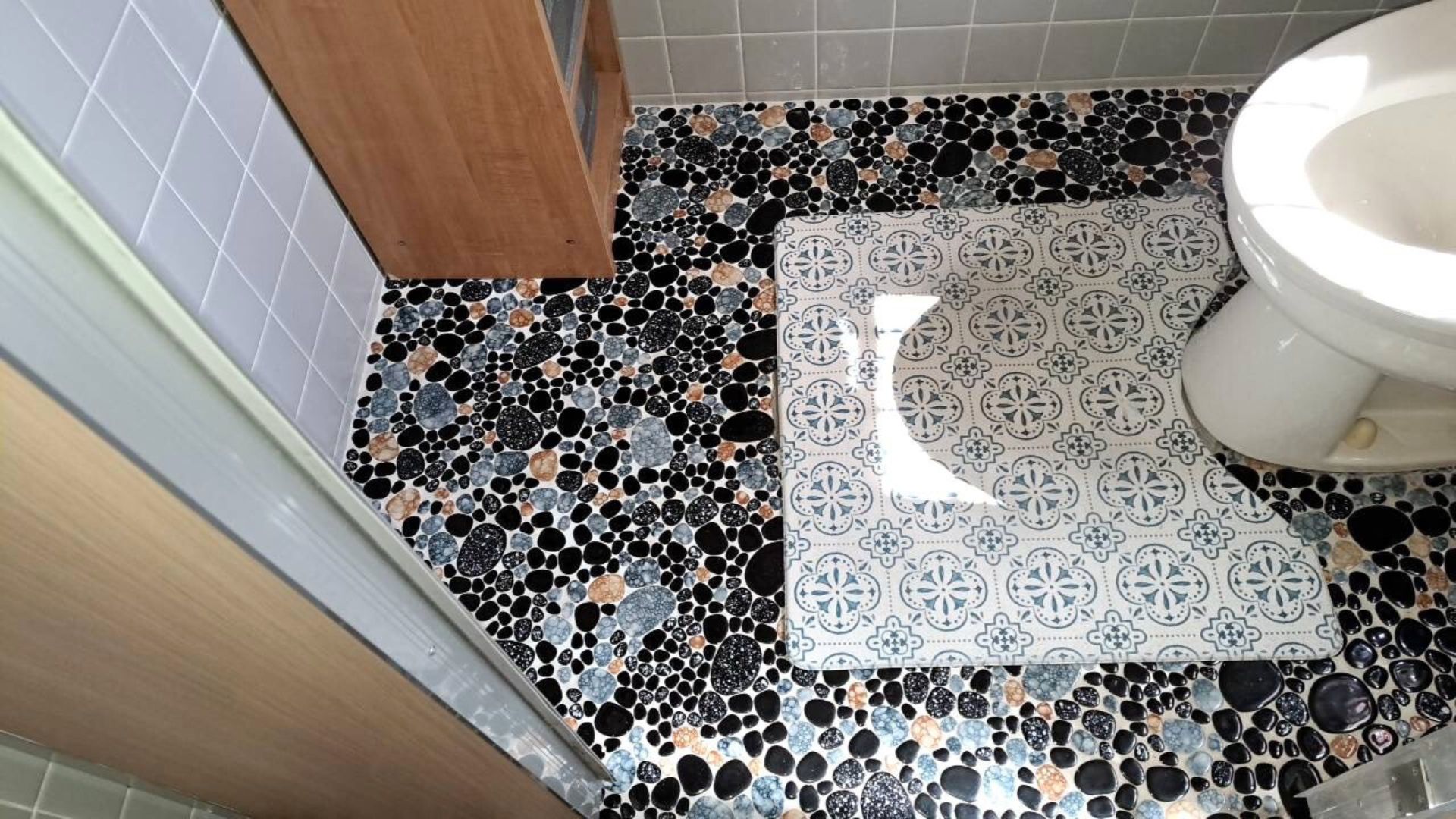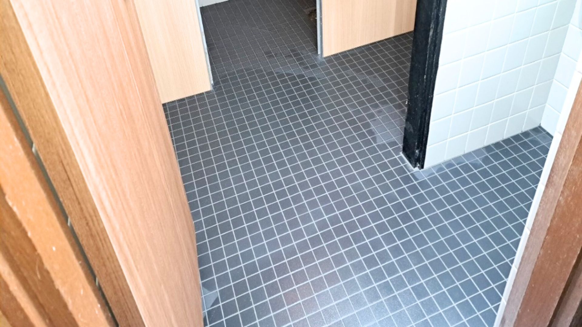 新しいタイルを貼り直し、床全体が明るく清潔感のある印象に仕上がりました。