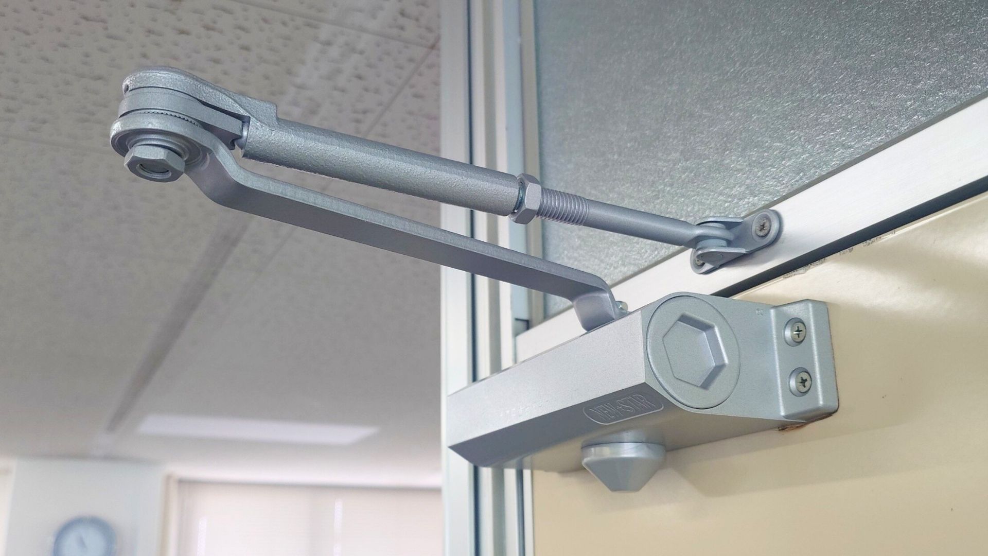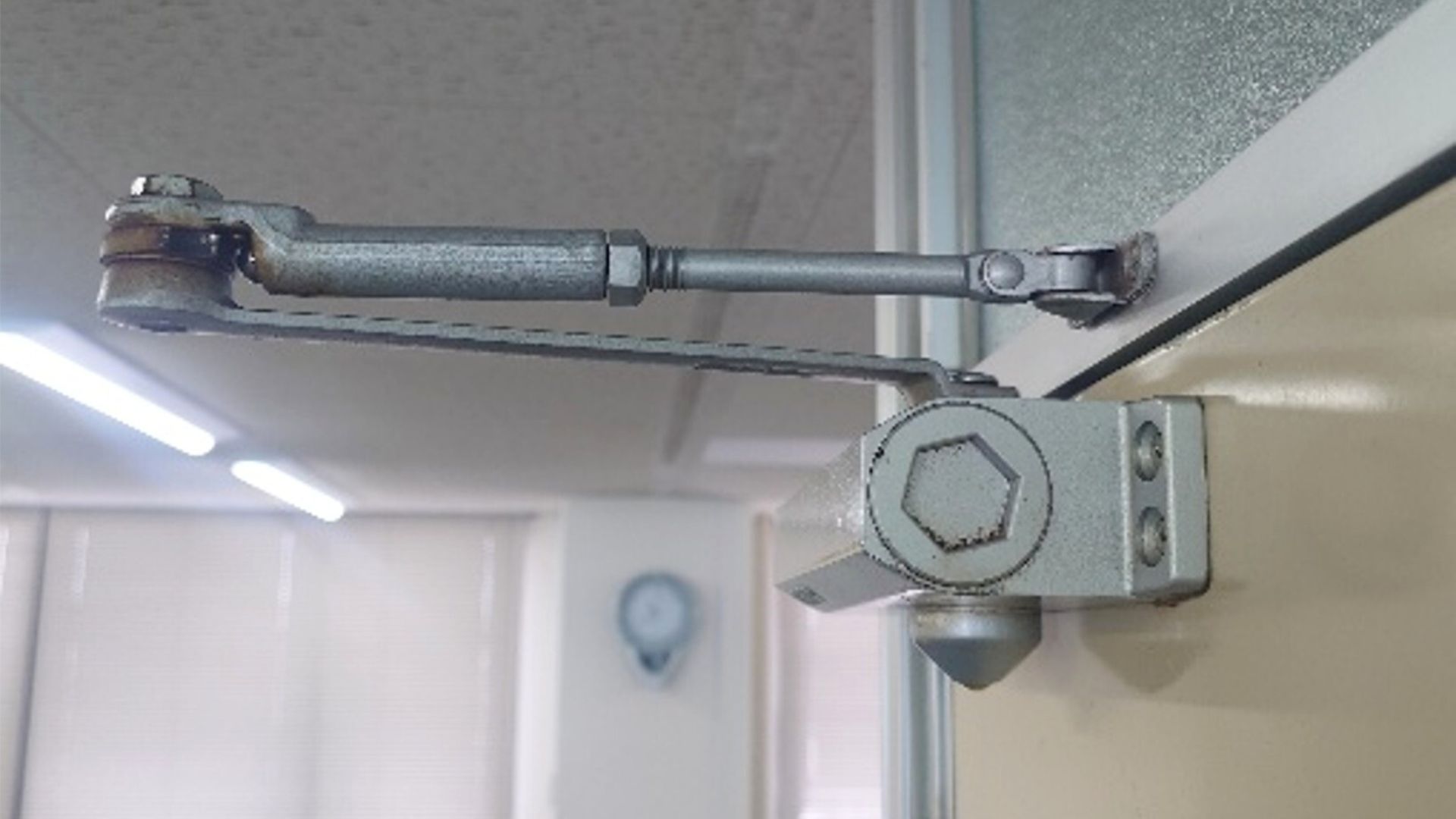 金沢市にある某会社様にて、ドアチェック開閉調整部品の交換工事を行いました。